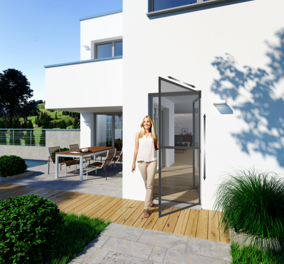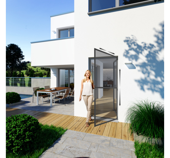 Ein wesentliches Merkmal unserer Insektenschutz-Drehtüren ist der selbstschließende Mechanismus. Dieser sorgt dafür, dass die Tür nach jedem Durchgang automatisch schließt, was einen kontinuierlichen Schutz vor Insekten gewährleistet und gleichzeitig die Handhabung für Sie und Ihre Familie erleichtert.