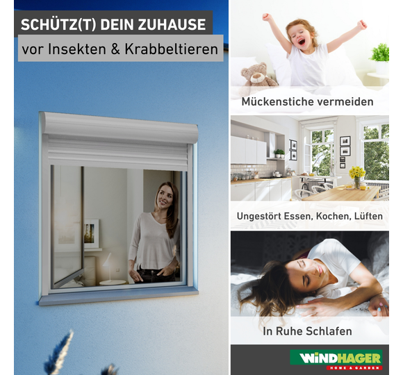 Vorbei sind die Zeiten, in denen Sie sich hinter verschlossenen Fenstern verbarrikadieren bzw. sich auf die Jagd nach den Plagegeistern machen mussten. Ab sofort können Sie erleichtert aufatmen. Mit dem ultraflachen Insektenschutzgitter für flächenversetzte Fenster in bewährter DIY-Bauweise hat Windhager einen Bausatz im Sortiment, der geringen Einbautiefen Rechnung trägt. Optimal also für all jene Fenster, wo wenig Platz vorhanden ist.