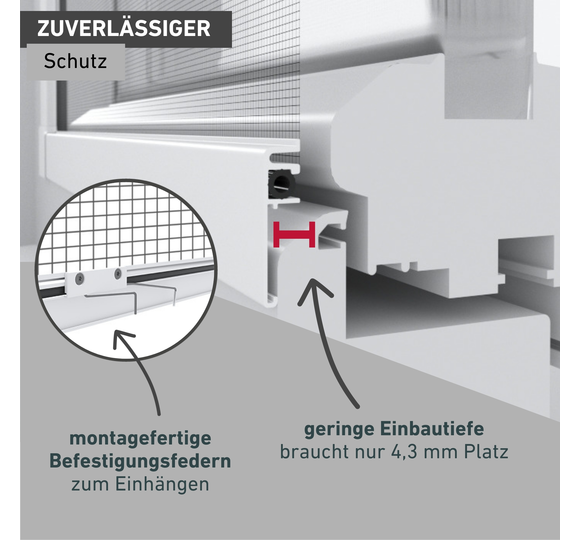 - PLATZSPARENDER MÜCKENSCHUTZ FÜR FENSTER - Das extraflache Insektengitter braucht nur 4,3 mm Platz für den Einbau. Perfekt für flächenversetzte Fenster, auch mit enganliegendem Rollladen.