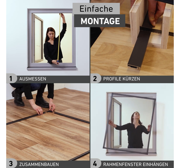 Die Installation unserer Insektenschutz-Rahmenfenster ist denkbar einfach und erfordert keine Bohrungen. Dies macht unsere Rahmenfenster besonders attraktiv für Mietwohnungen oder für alle, die eine flexible und schadensfreie Lösung suchen.
