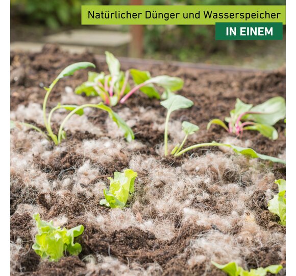 • HÄLT DEN BODEN FEUCHT - Schafwolle saugt sich wie ein Schwamm voll und speichert das Wasser langfristig im Boden
