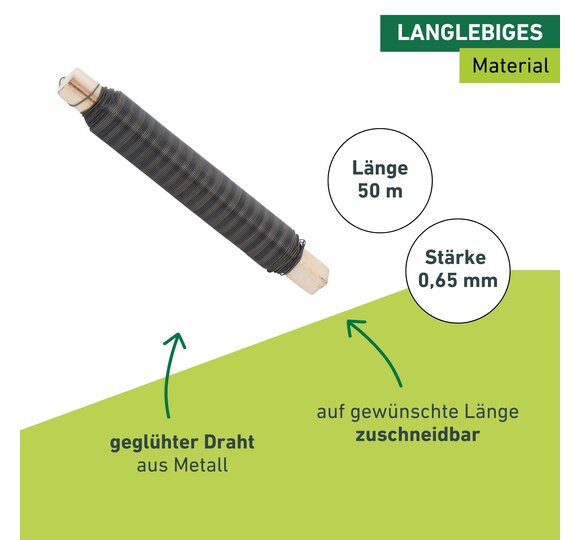 • LANGLEBIG - Der geglühte Draht ist widerstandsfähig gegen Rost und andere Umwelteinflüsse, was ihn für den langfristigen Einsatz geeignet macht.