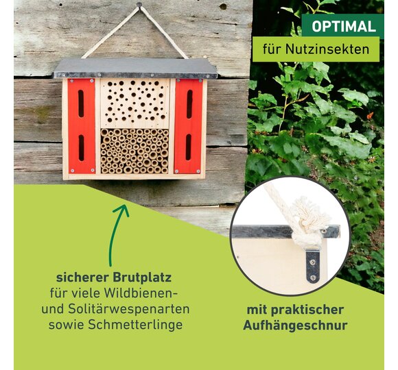 • IDEALER UNTERSCHLUPF – Das Insektenhotel Flat ist besonders geeignet für viele Wildbienen- und Solitärwespenarten