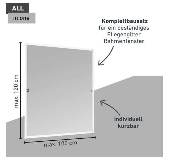 - ALL IN ONE – Komplettbausatz für ein beständiges Fliegengitter Rahmenfenster