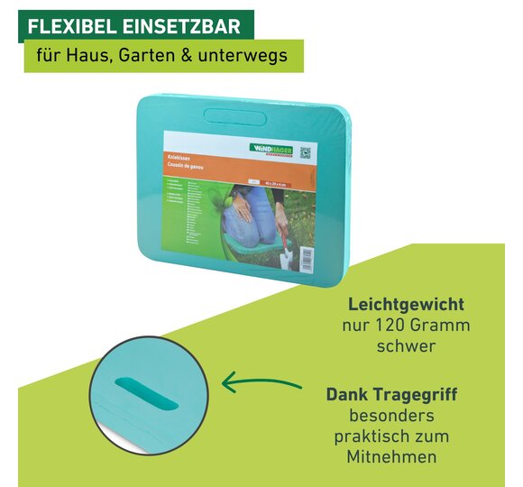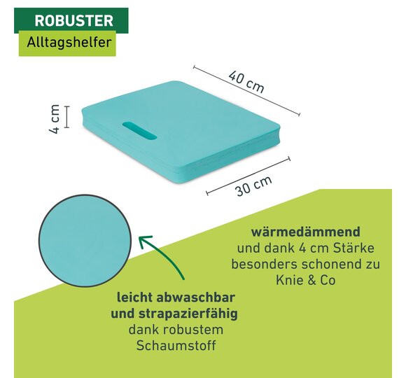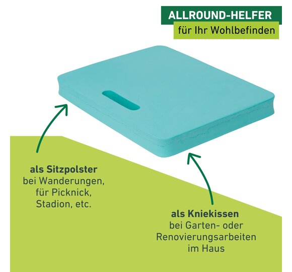 Hält die Knie trocken und warm. Auch als Sitzpolster verwendbar.
