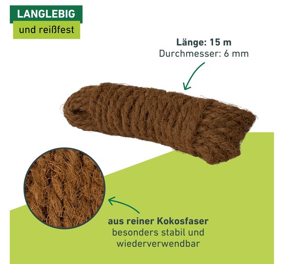 • IDEAL FÜR UMWELTBEWUSSTE GÄRTNER:INNEN – Die langlebige Schnur aus Kokosfasern ist ein Begleiter für mehrere Saisonen