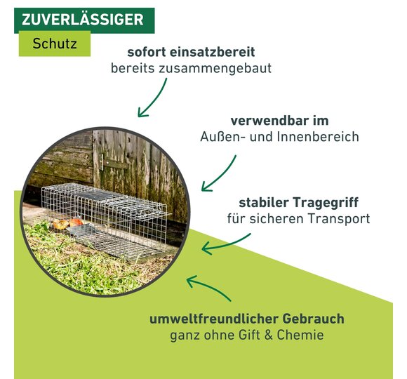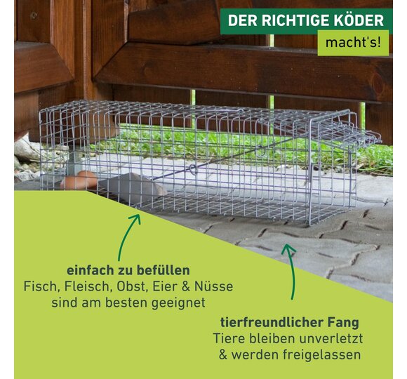 - TIERFREUNDLICHER LEBENDFANG – Die Tiere werden nicht verletzt und können an einer geeigneten Stelle wieder freigelassen werden