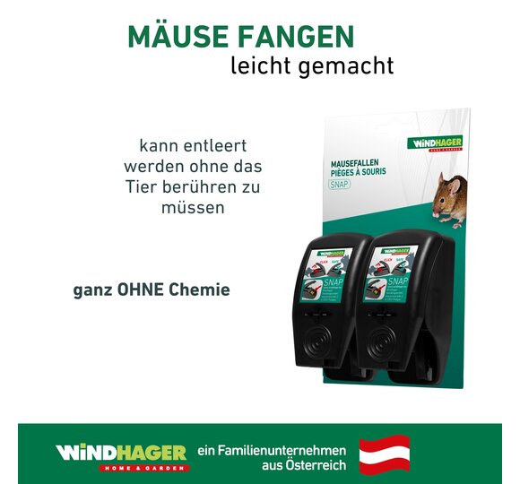 Mäuse und Ratten in Haus, Dachboden oder Schuppen sind eine wahre Plage. Nicht nur unangenehm, sondern auch sehr unhygienisch. Um sie wieder loszuwerden, gibt es verschiedene Möglichkeiten. Ultraschallgeräte, die auch gegen Marder wirken, klassische Mausefallen oder tierfreundliche Lebendfallen. Mit den Windhager Produkten zur Mäuse- und Rattenbekämpfung können Sie sich wieder ganz entspannt in Ihren Räumen bewegen.