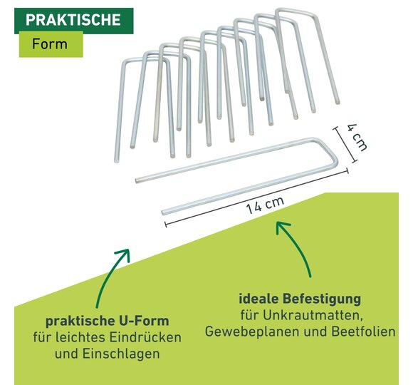 - PRAKTISCHE U-FORM - Für leichtes Eindrücken bzw. Einschlagen in den Boden (z. B. mit einem Gummihammer)