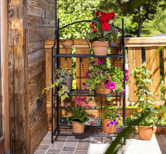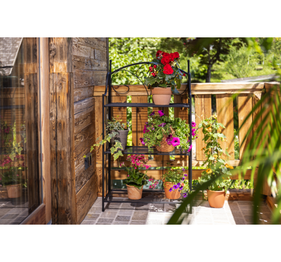 Das besonders stabile, freistehende Pflanzregal eignet sich für Innenräume genauso wie den Balkon, Terrasse und Garten. Kräuter, Blumen und Topfpflanzen kommen hier besonders schön zur Geltung! Aber auch Gartenwerkzeuge finden auf dem Pflanzregal Platz, sogar der Einsatz als dekoratives Schuhregal ist denkbar.