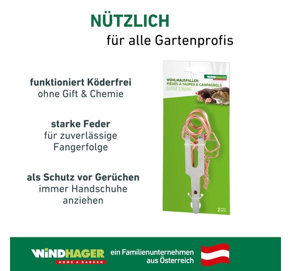 - SCHLUSS MIT WÜHLMÄUSEN – Mit der Wühlmausfalle SUPER STRONG von Windhager werden Sie Wühlmäuse effizient und schnell los