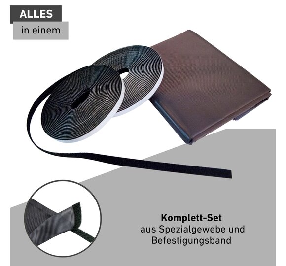 Das Spezialgewebe wird mithilfe des inkludierten, selbstklebenden Montage-Klettbandes direkt an den Fensterstock angebracht. So können Sie den Sommer ungestört genießen, ohne den Fensterrahmen beschädigen zu müssen. Bei Bedarf kann das Klettband jederzeit ohne großen Aufwand rückstandlos entfernt werden.