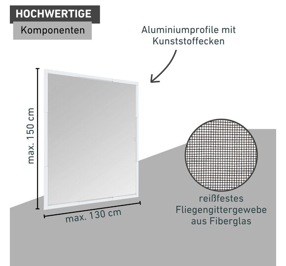 - HOCHWERTIGE KOMPONENTEN - Aluminiumprofile mit Kunststoffecken, reißfestes Fliegengittergewebe aus Fiberglas