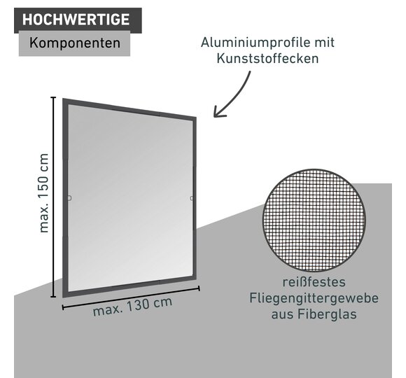 - HOCHWERTIGE KOMPONENTEN - Aluminiumprofile mit Kunststoffecken, reißfestes Fliegengittergewebe aus Fiberglas