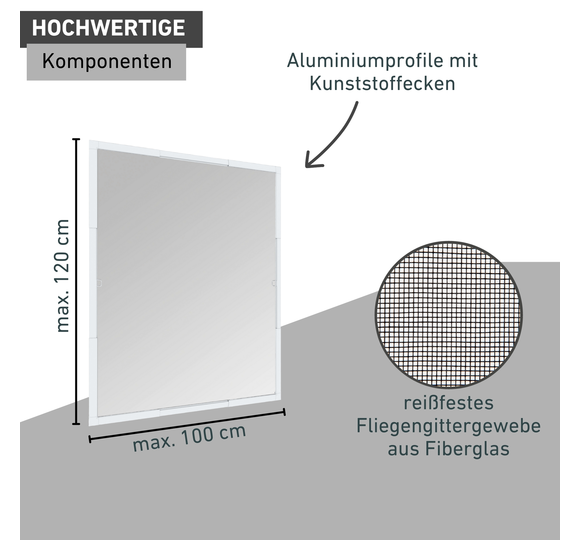 - HOCHWERTIGE KOMPONENTEN - Aluminiumprofile mit Kunststoffecken, reißfestes Fliegengittergewebe aus Fiberglas