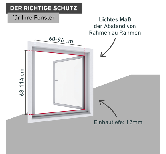 - SÄGEFREI - stufenlos teleskopierbares Rahmenfenster, mind. 60x68 cm bis max. 96x114 cm oder min. 75x83 cm bis max. 126x144 cm