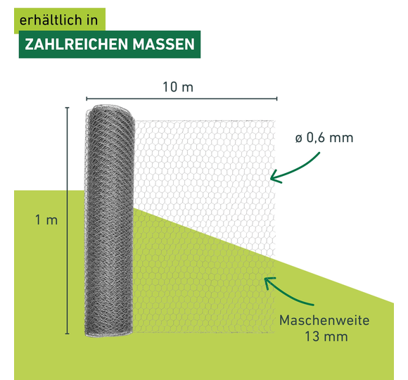 Der vielseitig einsetzbare Klassiker unter den Geflechten wird gerne für Zäune, als Tiergehege für Hasen, Meerschweinchen oder Hühner sowie als Voliere für Vögel oder als Dachrinnenabdeckung verwendet.