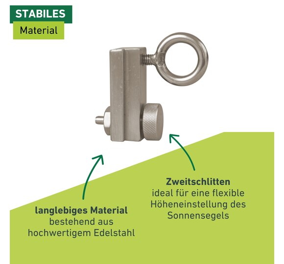 - PRAKTISCHER ZUSATZNUTZEN - Als Zweitschlitten ideal für eine flexible Höheneinstellung des Sonnensegels