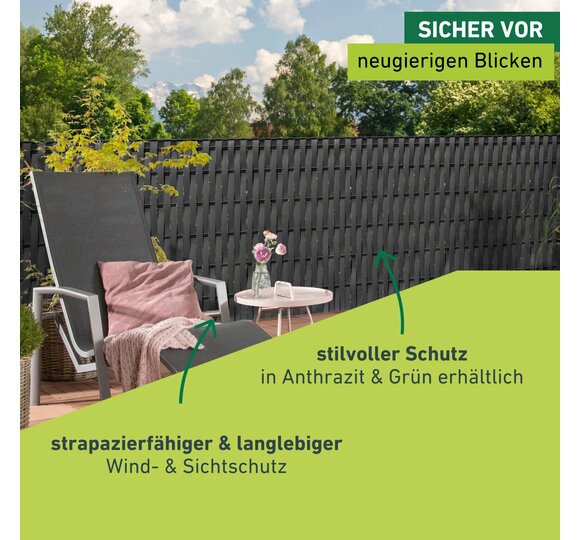 - MODERNE FARBEN – In Anthrazit und Grün erhältlich, passend zu den meisten Zaunfarben