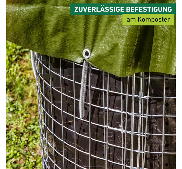 - OPTIMALER SCHUTZ FÜR DEN KOMPOST - Die Spannfeder sorgt für sicheren Halt der Plane auf dem Kompostgitter