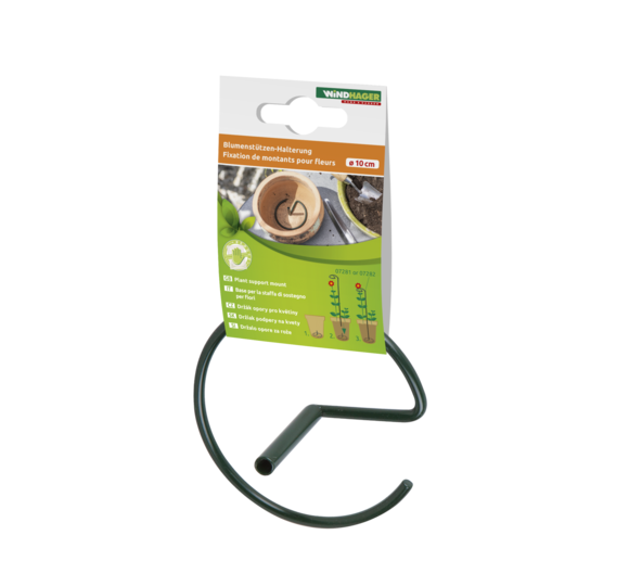 Die Halterung aus Metall - gemeinsam eingesetzt mit der Windhager Blumen-/Blütenstütze (07281, 07282) - eignet sich perfekt, um Topfpflanzen Halt zu geben. Die Stütze wird entweder direkt in oder unter einen Pflanztopf mit Abflussloch gestellt. Die Windhager Blumen-/Blütenstütze darauf stecken, Pflanze einsetzen, und den Topf mit Erde auffüllen.