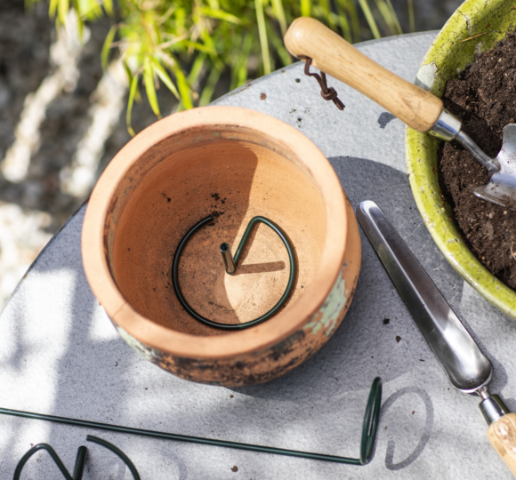 - in oder unter den Topf stellen und Blumen-/Blütenstütze einstecken