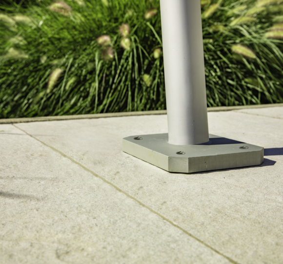 Verschraubt am Terrassenboden, ist der Terrassenhalter Premium die ideale Ergänzung zum Sonnensegelmast Premium. Der aus beschichtetem Stahl gefertigte Terrassenhalter trotzt stärkster Belastung, ist witterungsbeständig und langlebig. Das um 10° geneigte Formrohr optimiert zusätzlich die Stabilität, da der Sonnensegelmast entgegen der Zugkraft des Sonnensegels fixiert wird.
