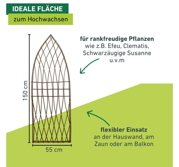 • IDEALE FLÄCHE ZUM HOCHWACHSEN - Für rankfreudige Pflanzen wie z.B. Efeu, Clematis, Schwarzäugige Susanne u.v.m.