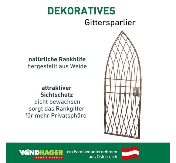 Rankfreudige Pflanzen setzen besondere Akzente im heimischen Garten und erfreuen sich dadurch großer Beliebtheit. Ein dekoratives Gitterspalier wie das Windhager Weide Rankgitter als Pflanzenstütze ist dabei die richtige Wahl.