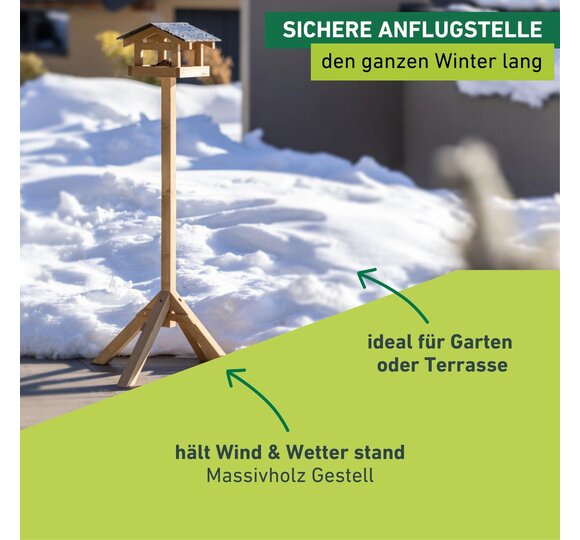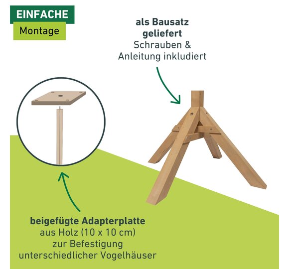 - STANDHAFT - Vier Beine aus massivem Kiefernholz geben kleinen und großen Vogelhäusern Halt.