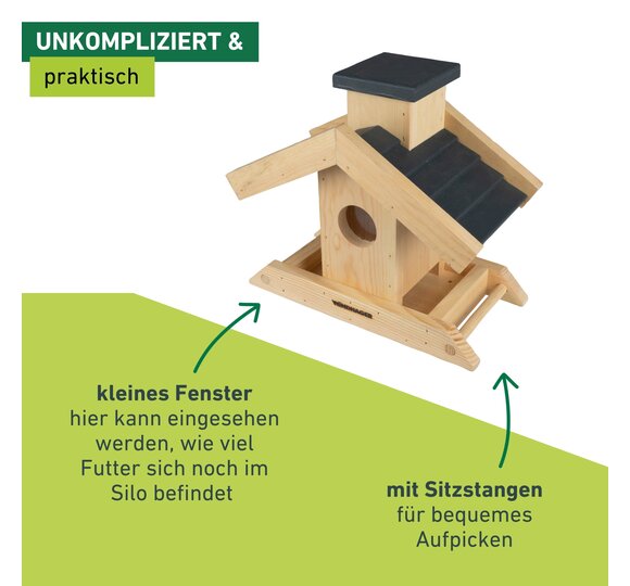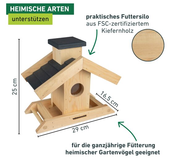 - HOCHWERTIGES VOGELFUTTERSILO – Witterungsbeständiges Silo aus FSC zertifiziertem Kiefernholz