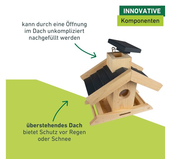 - SCHUTZ VOR NÄSSE – Das überstehende, massive Dach bietet Schutz vor Regen und Schnee