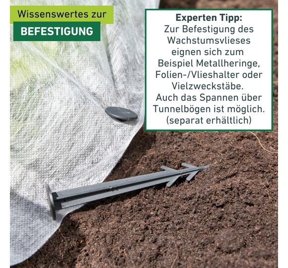 - EINFACHE BEFESTIGUNG - Vlies nach der Saat im Beet auslegen, mit Steinen oder Erdnägeln befestigen. Es kann bis zur Ernte auf den Pflanzen liegen bleiben.