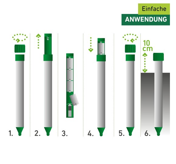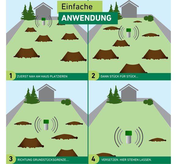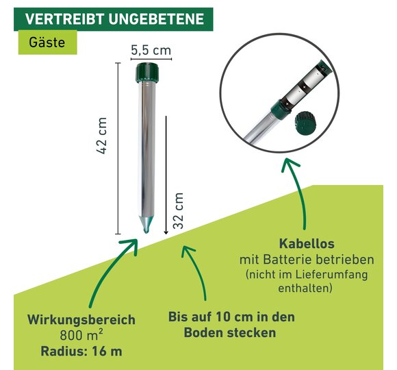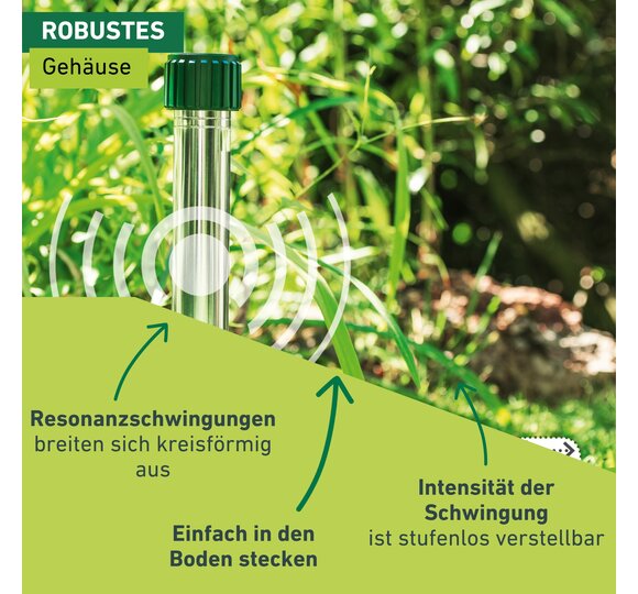 - EINFACHE ANWENDUNG – Der Vertreiber wird am gewünschten Einsatzort einfach in den Boden gesteckt