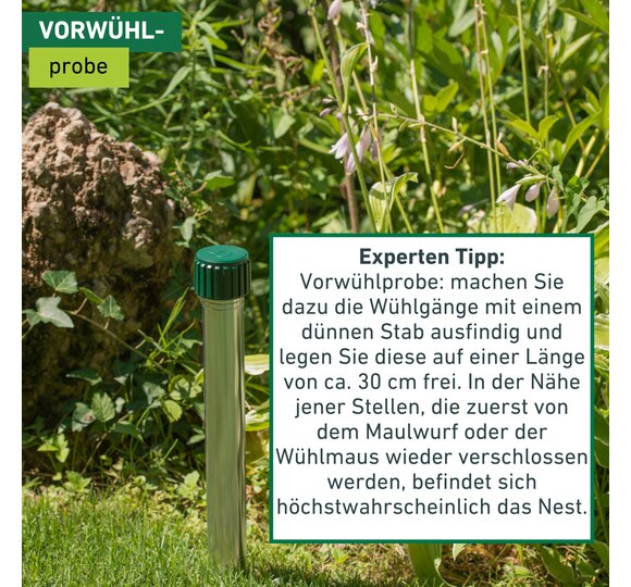 Positionierung des Wühlmaus- & Maulwurfvertreibers ALUMINIUM