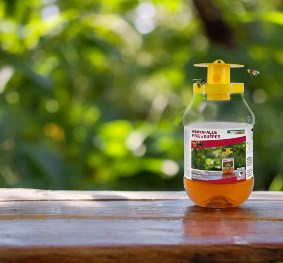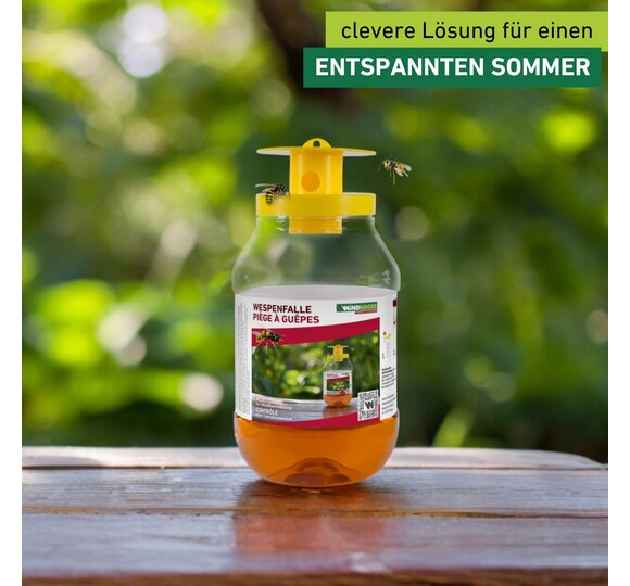 Gut zu wissen: Der bienenfreundliche Wespenlockstoff von Windhager ist so konzipiert, dass er die wertvollen Nützlinge nicht anlockt. Er ist zudem auch als Nachfüller separat erhältlich.