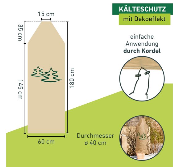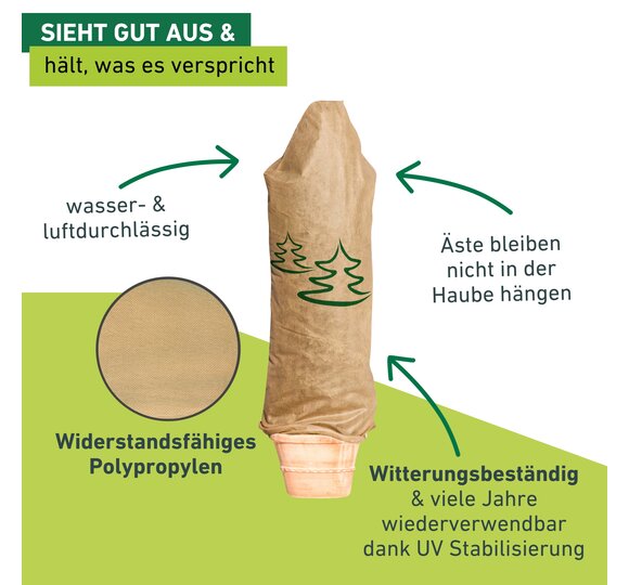 - DEKORATIVE VLIESHAUBE – Die Haube mit Tannenmotiv schützt vor Frost und schafft einen dekorativen Hingucker im Garten
