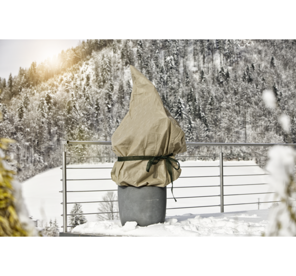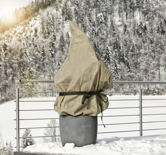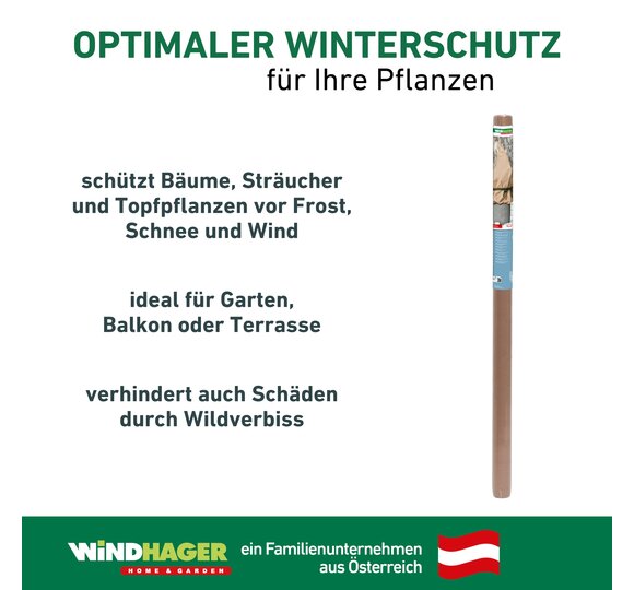 Ein Wintervlies hilft dabei, Topfpflanzen, (Jung-)Bäume und Sträucher im Garten während der kalten Jahreszeit vor Frost und Wind zu schützen. Im späten Herbst, kurz bevor der Winter einkehrt, gilt es die Pflanzen gut einzupacken. Zweige und sperrige Pflanzen können, vor dem Umwickeln mit dem Wintervlies, mit einer Schnur, wie zum Beispiel dem Kokos-Baumanbinder von Windhager, zusammengebunden werden. Danach klappt das Umwickeln mit dem Wintervlies schnell und unkompliziert. Achten Sie darauf, dass die gesamte Pflanze bedeckt ist und keine Zweige oder Blätter mehr sichtbar sind. Für optimalen Schutz sollte das Vlies mehrmals um die gesamte Pflanze gewickelt werden. Befestigen Sie das Wintervlies anschließend zum Beispiel mit einer Bindeschnur, damit die Pflanzen den ganzen Winter über zuverlässig geschützt bleiben. Passendes Bindezubehör finden Sie ebenfalls im Windhager-Sortiment. Bei Kübelpflanzen sollte auch der Topf geschützt werden. Das funktioniert schnell und unkompliziert mit dem Windhager-Topfschutz. Für rundum gut geschützte Pflanzen können Sie den Topf zusätzlich auf eine Topfunterlage stellen.