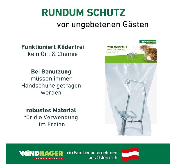 - SCHLUSS MIT WÜHLMÄUSEN – Mit der Wühlmausfalle BRACKET von Windhager werden Sie Wühlmäuse effizient und schnell los