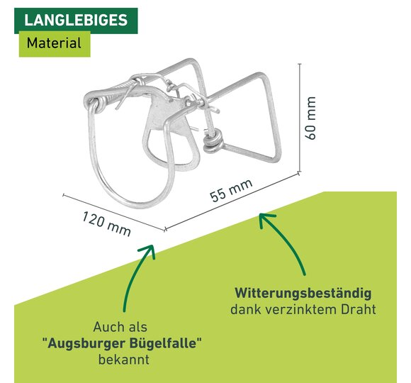 - BEWÄHRTE BÜGELFALLE – Zuverlässige Bügelfalle, auch bekannt als "Augsburger Bügelfalle"