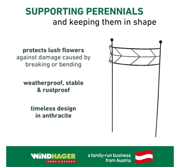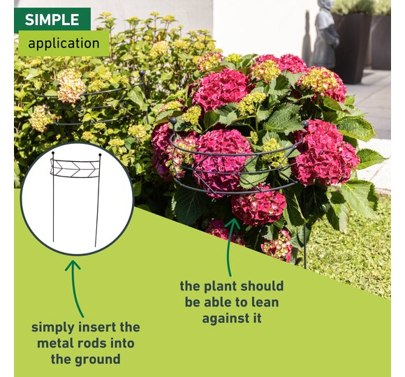 Plants that flower profusely like dahlias and peonies need some support as they grow. This decorative ARROW perennial holder supports the plant and protects against breaking and snapping. The metal rods are simply stuck into the ground so that the plants can comfortably lean against them. The best time is spring or autumn so that the perennials can grow at a steady pace.