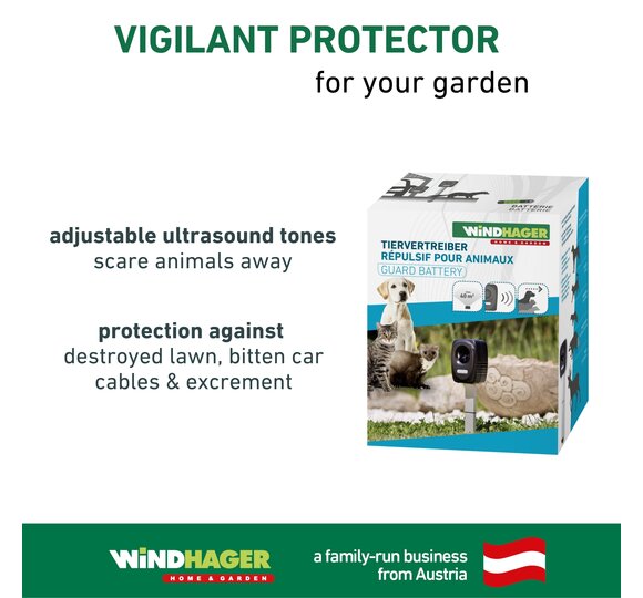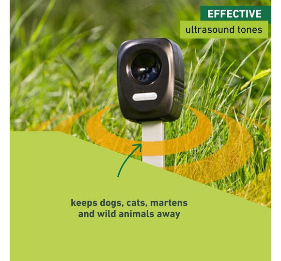 The low-frequency ultrasound waves that are distributed in a wave-like way are barely audible to the human ear, yet pests such as cats, dogs and martens find them extremely jarring and take flight quickly. The repeller reduces damage, noise and odours caused by animals marking their territory and wild animals to a minimum – a must-have for all garden owners.