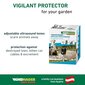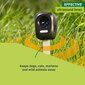 The ultrasonic repeller can be anchored in the ground using the included ground spike and can also be suspended thanks to the recess on the back. The integrated infrared motion sensor activates the ultrasound tones in accordance with the set intervals [0-3] within a frequency range between 17 to 23 kHz.