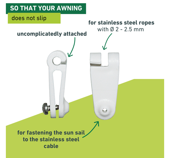 Made of top-quality, UV-resistant plastic, for stainless steel parts 2 - 2.5 mm. Can be washed with the sail. Easy to attach.