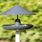 Made of powder-coated metal, it is sturdy, weather-resistant, and suitable for year-round use. The overhanging roof reliably protects the food from rain, while small holes in the base prevent standing water.