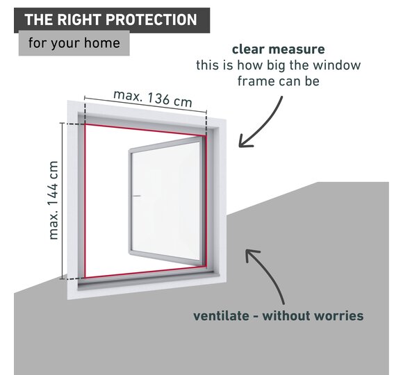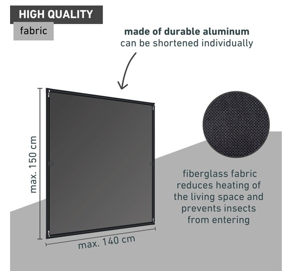 The aluminium tension frame is easy to assemble, can be individually shortened to your window size and is suitable for all common window types.