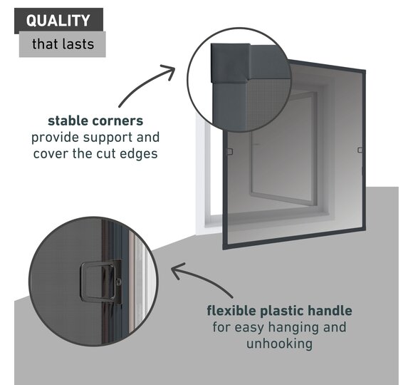 The aluminium tension frame is easy to assemble, can be individually shortened to your window size and is suitable for all common window types.