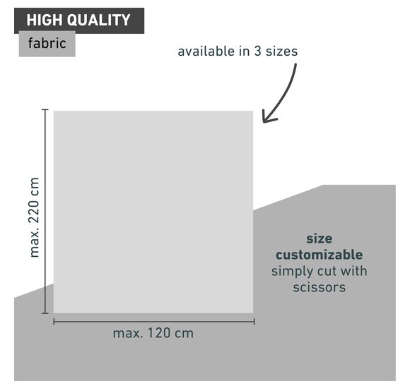 The shade fabric can be cut to size and is attached to the outside of the window sash using eyelets and adhesive hooks (included). The window can be opened at any time for ventilation, but the sun protection is only effective when the window is closed.