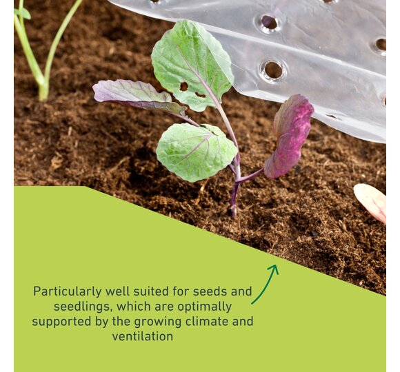 Particularly suitable for seeds/seedlings, which are encouraged to grow by the greenhouse effect (warmth) and air holes (ventilation). The process of maturation is accelerated, resulting in an excellent harvest.