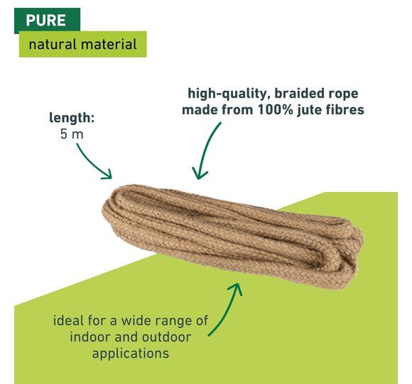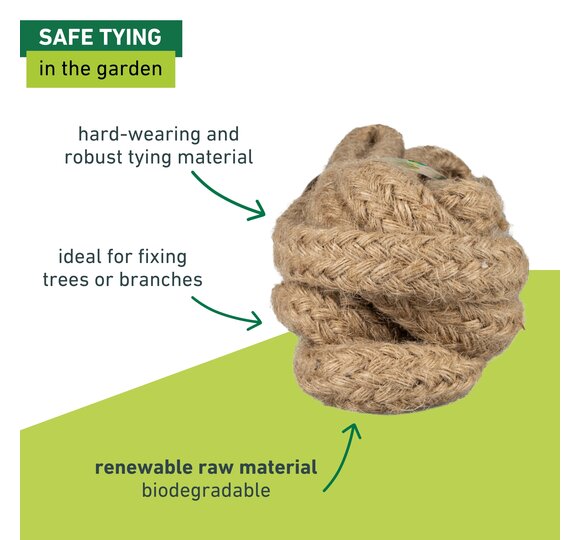 Environmentally conscious action made easy! The braided rope made of 100% jute fibre from Windhager can be used in nature with a clear conscience, as it is biodegradable and recyclable.